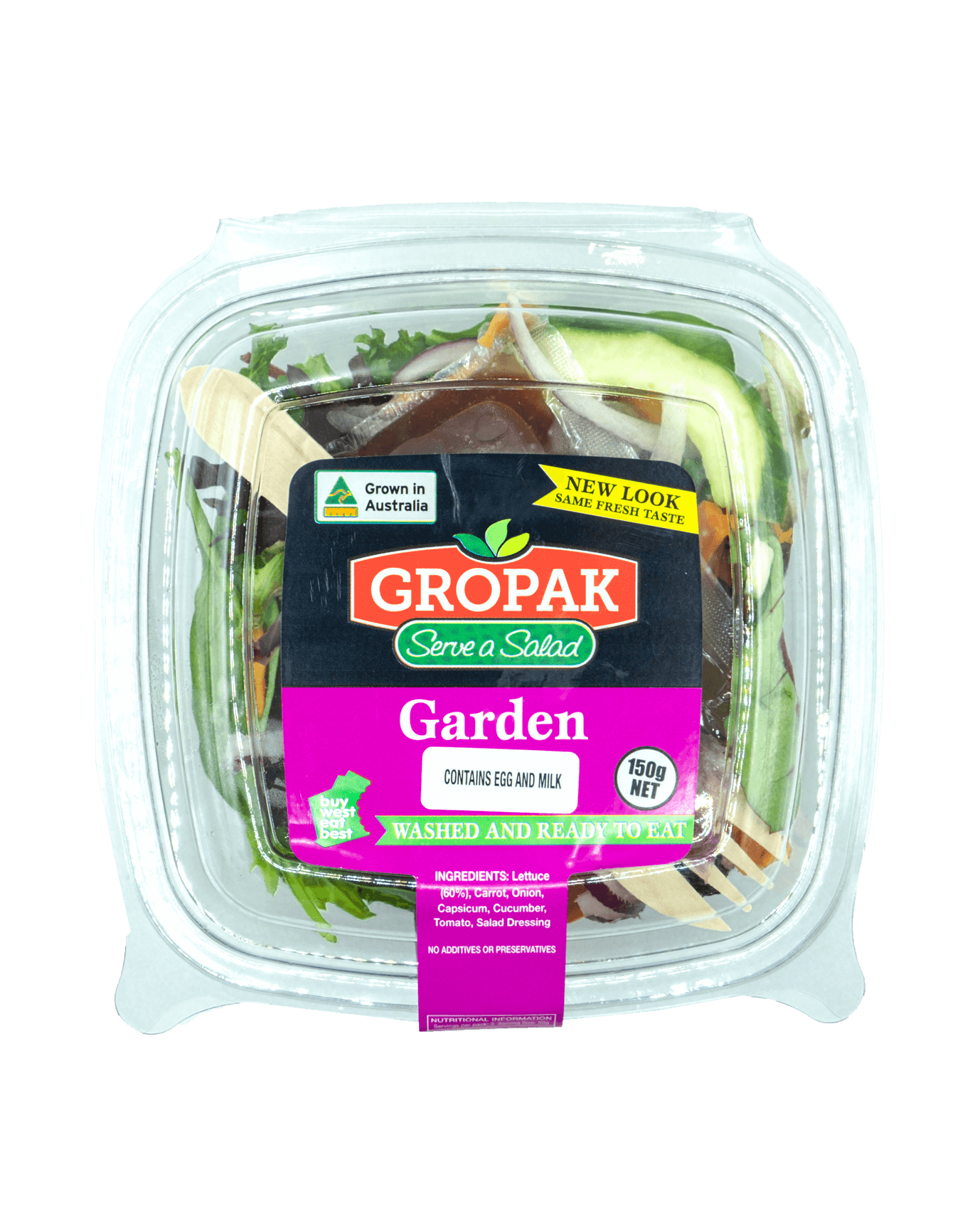 Lettuce (48.3%), red wine & balsamic dressing [vinegar, sugar, water, balsamic vinegar (vinegar, grape must, colour (150d)] red wine (egg, milk), garlic, salt, onion, thickener (415), herbs and spices, colour (160e)], tomatoes, carrot, onion, cucumber, capsicum