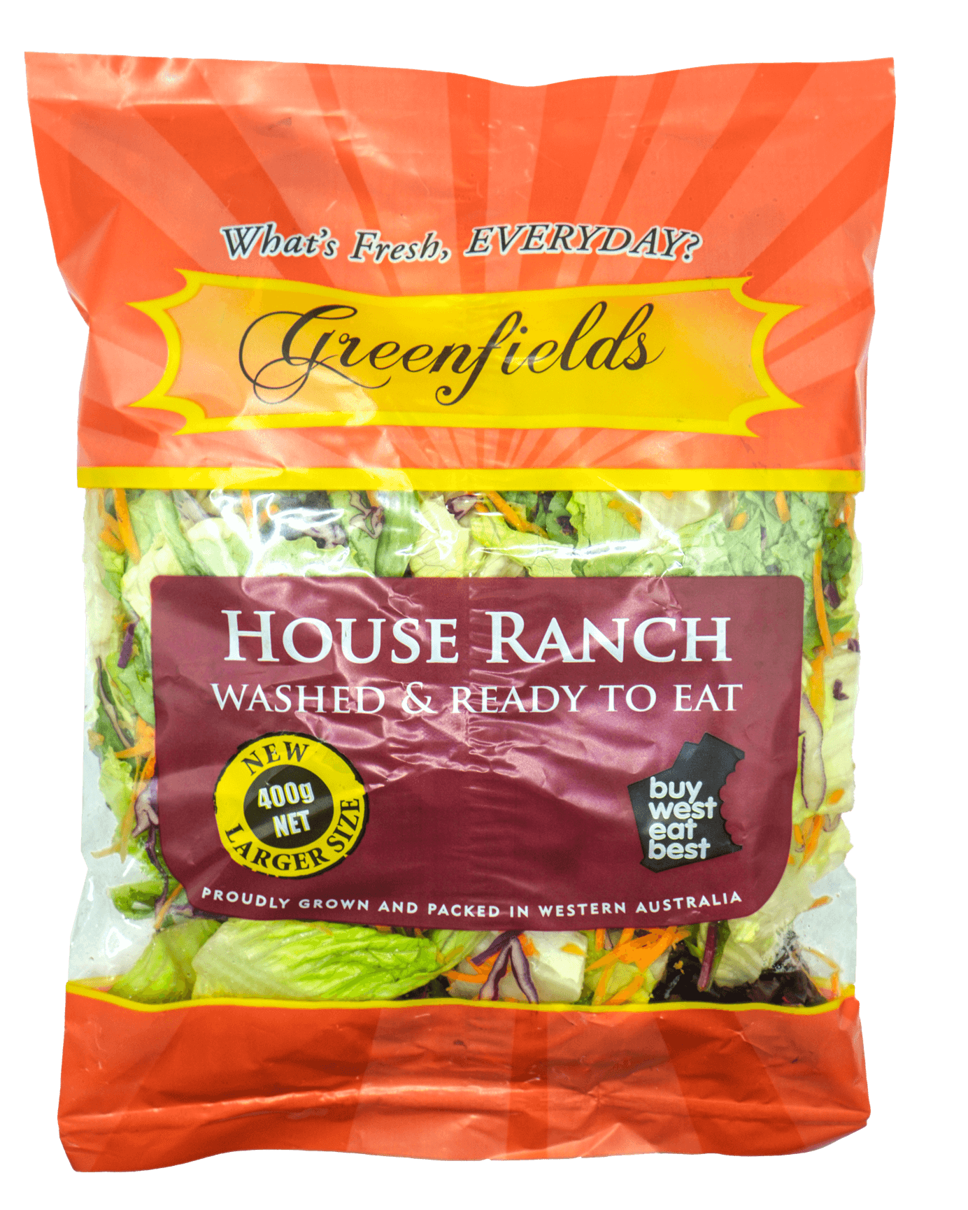 ICEBERG LETTUCE, COS LETTUCE, CARROTS, RED CABBAGE, RANCH DRESSING (WATER. CANOLA OIL (OIL ANTIOXIDANT (307)), MILK POWDER (MILK SOLIDS) (13.8%), SUGAR, EGG, SALT, BUTTER CONCENTRATE (1.5%). VINEGAR, GARLIC, FOOD ACID (270), HERBS AND SPICES, FOOD ACIDS (260), ΟΝΙΟΝ, MUSTARD, THICKENER (415), PRESERVATIVES (202, 234), LEMON CONCENTRATE).