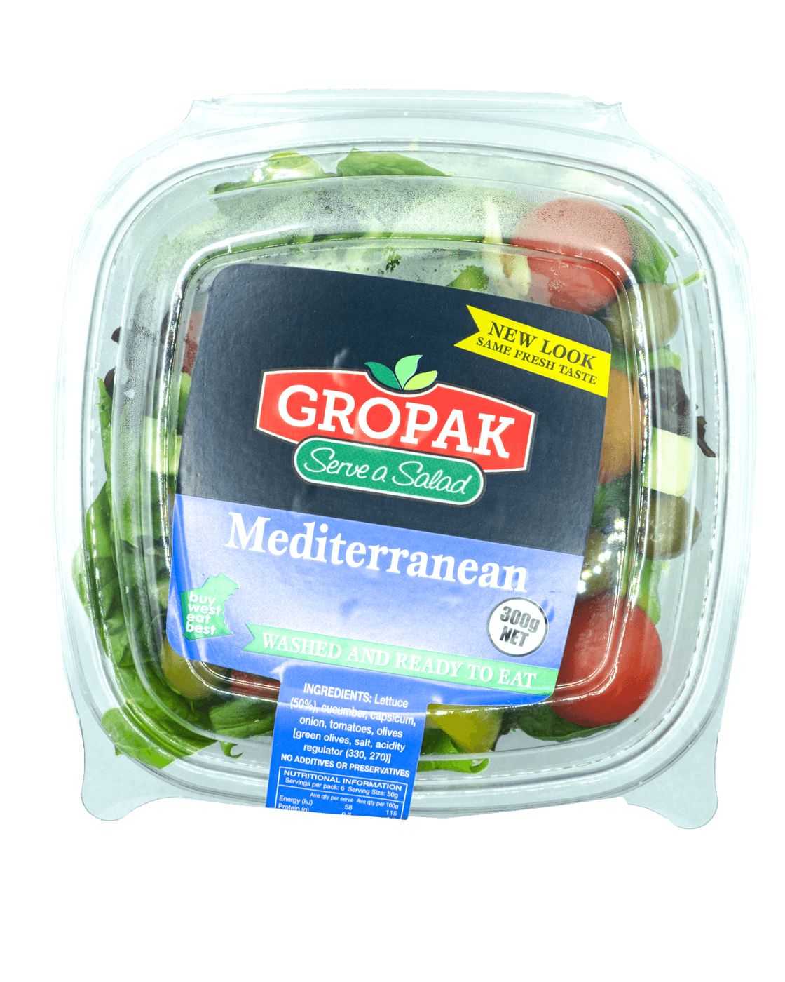 Lettuce (50%), cucumber, capsicum, onion, tomatoes, olives [green olives, salt, acidity regulator (330, 270)]
