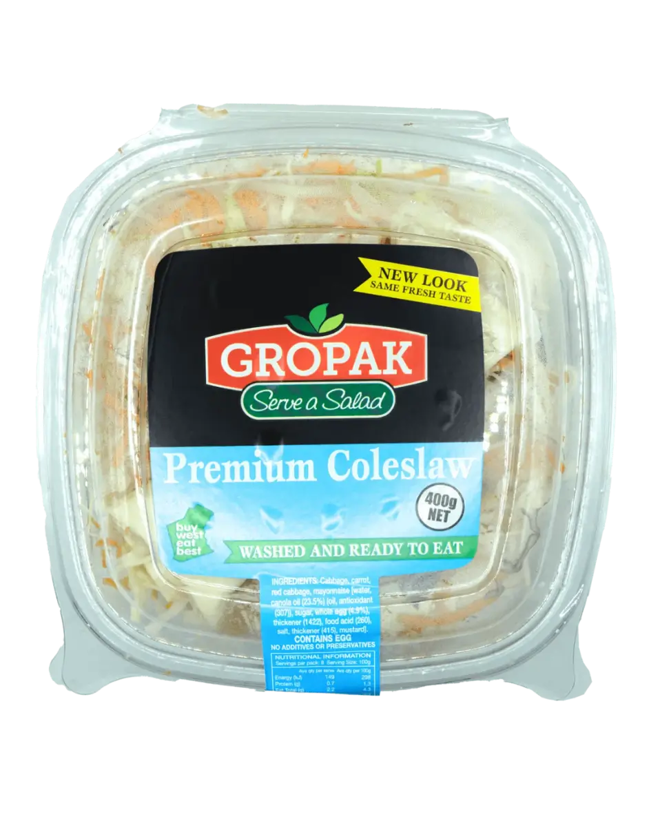 Cabbage, carrot, red cabbage, mayonnaise [water, canola oil (23.5%) (oil, antioxidant (307)), sugar, whole egg (4.9%), thickener (1422), food acid (260), salt, thickener (415), mustard].